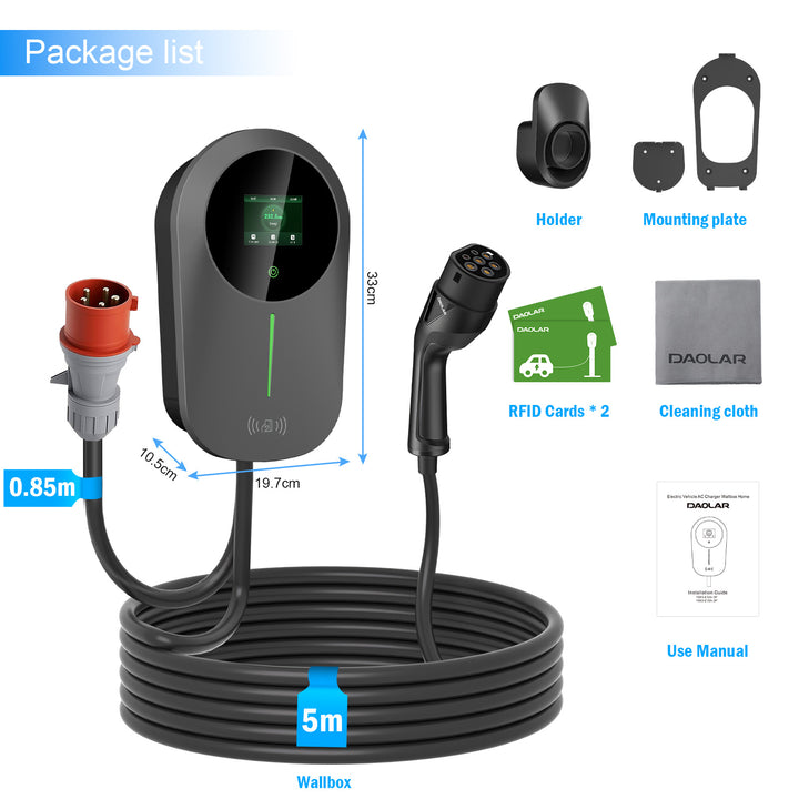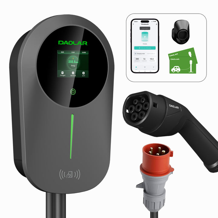 Daolar Wallbox 11kw com APP trifásico 6-16 A Tipo 2 EV Estação de carregamento com display digital controlável e 2 cartões RFID para carro elétrico, atualização RCD B proteção de corrente