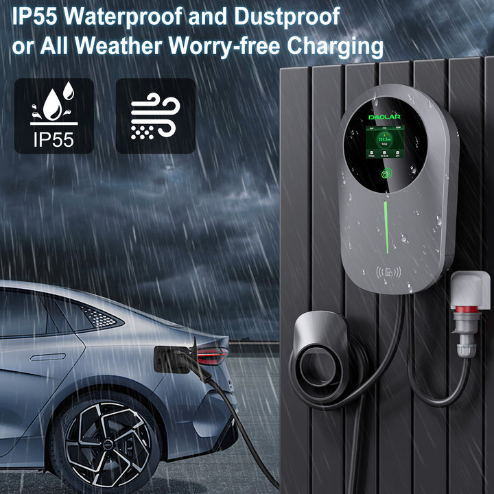 O Caixa de parede Y083 ostenta um Classificação IP55 à prova de água e poeira, tornando-o adequado para instalação em garagens, pátios ou parques de estacionamento ao ar livre. Pode facilmente suportar vários condições climáticas, garantindo operação estável a longo prazo. Isso é design robusto e materiais de alta qualidade Faça disso um solução de carregamento durável.