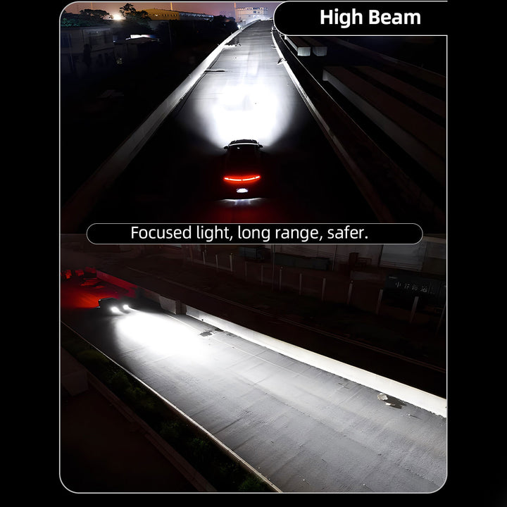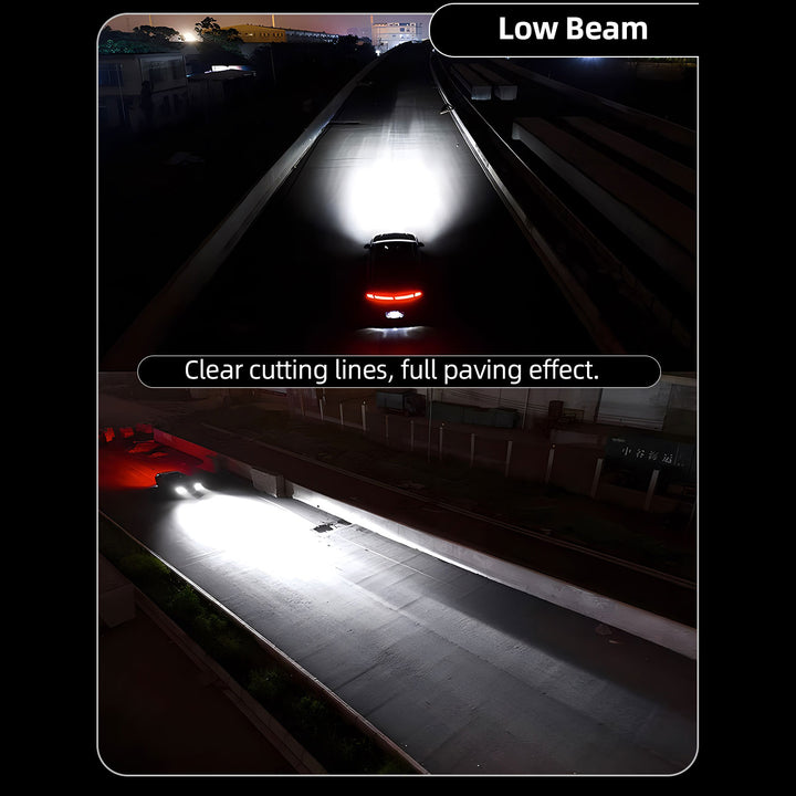 PADRÃO DE FEIXE PERFEITO & SEGURANÇA: O design óptico imita a posição do filamento halógeno para produzir um padrão de feixe super focado. O feixe baixo oferece linhas de corte claras com um efeito de pavimentação completo, enquanto o feixe alto proporciona visibilidade focada e de longo alcance. Esta precisão assegura que veja claramente sem ofuscar o tráfego em sentido contrário, criando uma experiência de condução mais segura.