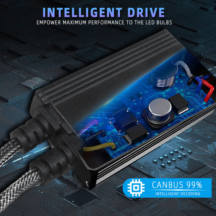 99% COMPATÍVEL COM CANBUS & DRIVER INTELIGENTE: Equipadas com uma caixa de driver inteligente externa, estas lâmpadas possuem capacidades avançadas de decodificação. São compatíveis com 99% dos sistemas de veículos, resolvendo problemas comuns como códigos de erro no painel, cintilação ou interferência no rádio. O driver externo também separa a fonte de alimentação do corpo da lâmpada, ajudando ainda mais na gestão do calor.