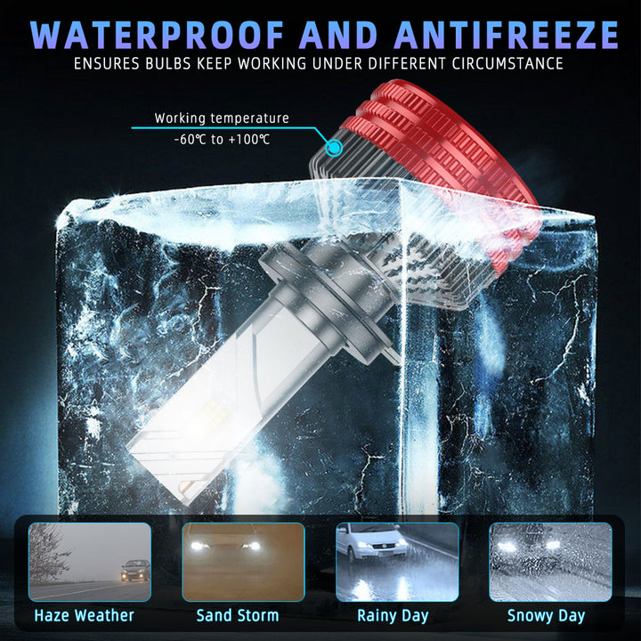 IP68 À PROVA DE ÁGUA & DURABILIDADE PARA TODAS AS CONDIÇÕES CLIMÁTICAS: Projetadas para resistir a condições extremas, estas lâmpadas funcionam perfeitamente em temperaturas que variam de -60°C a +100°C. Quer enfrente chuva forte, neve, tempestades de areia ou nevoeiro, a construção à prova de água e anticongelante garante iluminação confiável. O design compacto permite uma instalação fácil e não destrutiva "plug and play" em minutos.